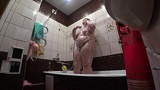 Busty curvy milf showers for voyeur thrills! 🛁🔥👀