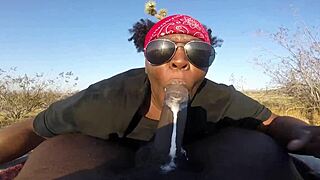 Fat Ebony Slut Deepthroats Monster BBC in Car on 4th July Public Cumshot