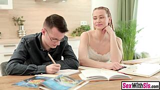 Cute step sister skips books for wild bedroom action