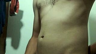 Ladyboy with Puffy Nipples Strokes Hard for Intense Cumshot
