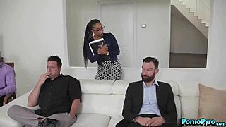 ebony babe gets feet worshipped then fucked hard