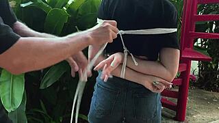 Punishing Pretty Blonde by Tickling Her Sexy Outdoor Feet