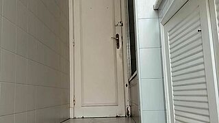 Guy of Big Dick Takes Armchair to Bathroom and Masturbates
