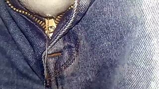 over the pants handjob leads to a messy finish in his clothes