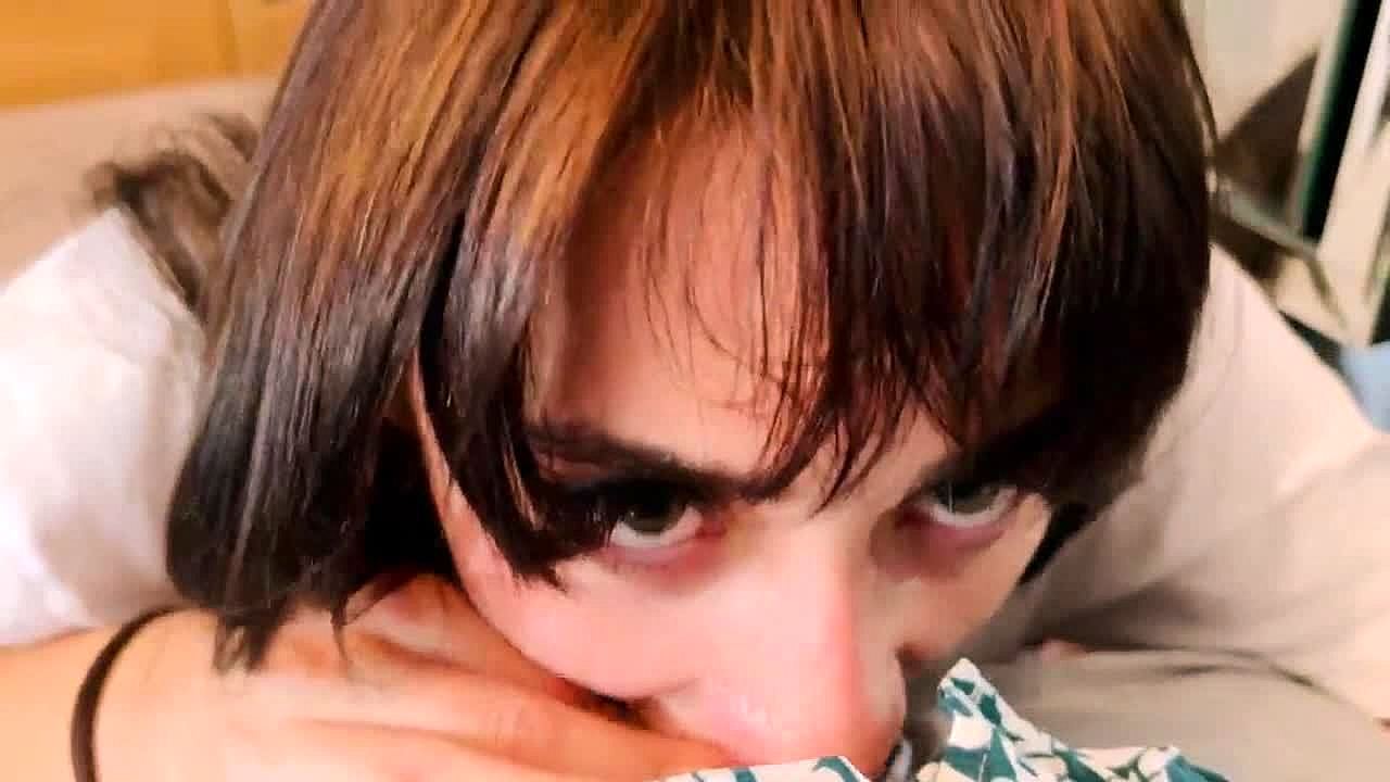 Super Close Up Slow Blowjob for Friend with Hot Brunette Swallowing Cum