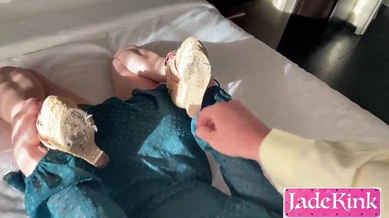 girl's friend gets feet fucked, pussy licked, and cum on boobs