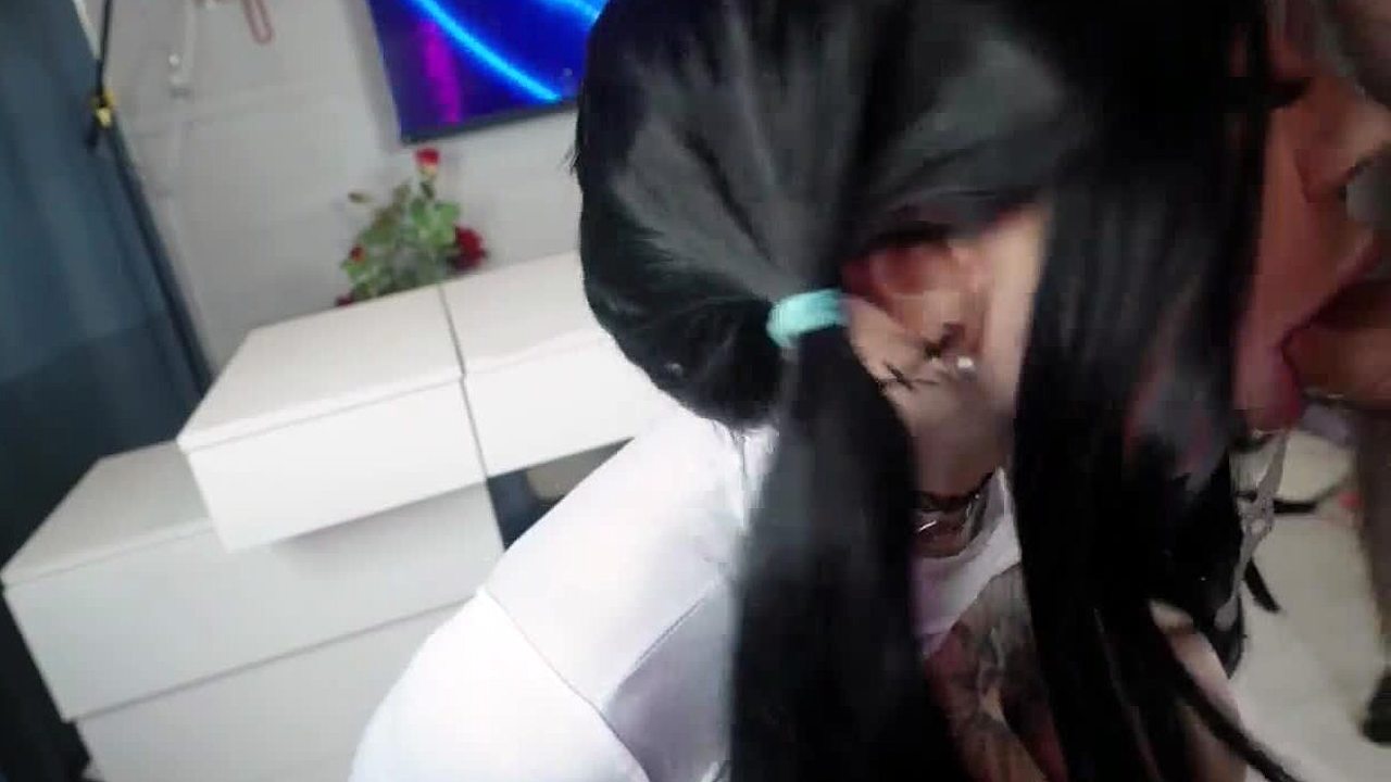 Hey, watch this slut gag on my dick while I choke her throat in wild poses